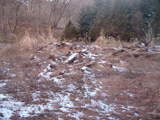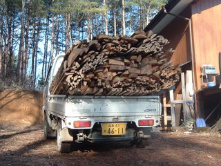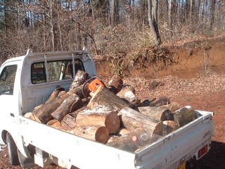 6年ほどまえ近所で伐採があったとき椎茸のほだ木にならない木(主に松)を貰ってきて置いておいたものです。2トントラックで15回位運びました。