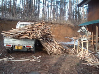 行きつけの製材所で製材した時に出る端板を貰ってきました。