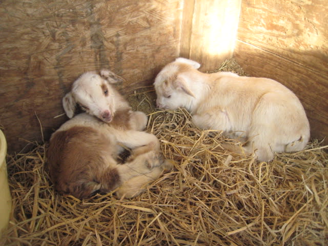 仔ヤギ君達も小屋の中でスヤスヤ。
