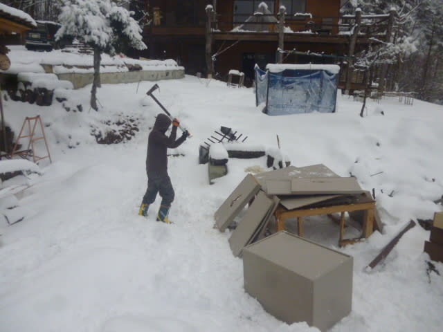 トラックに積んできた不用品を降ろし、夕方のエサやりも終わり、夕方部屋に帰って来たらまた始まった~(爆)↓