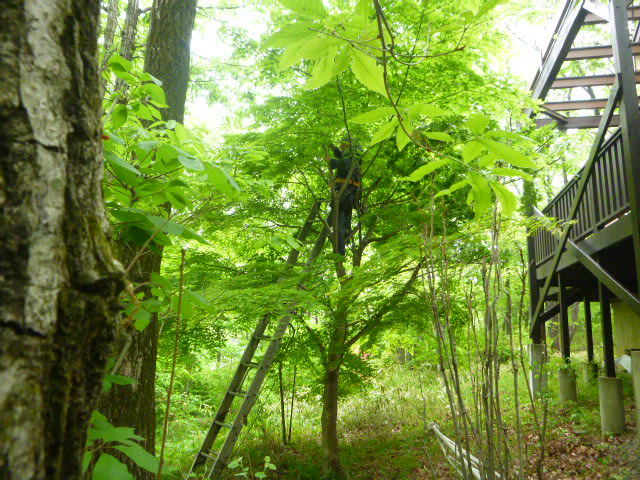 昨日は雨の中で伐採のお仕事でした。
