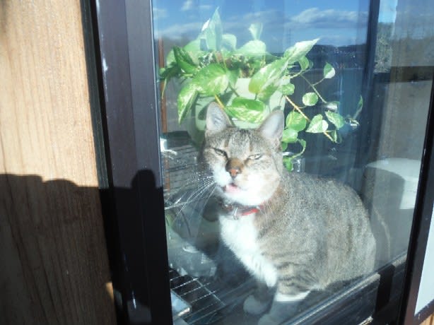 はい、茶トラはこの辺り一帯をテリトリーにしてる野良で我が家もその一部のようで3㌔の山道を通ってくる外猫さんです。